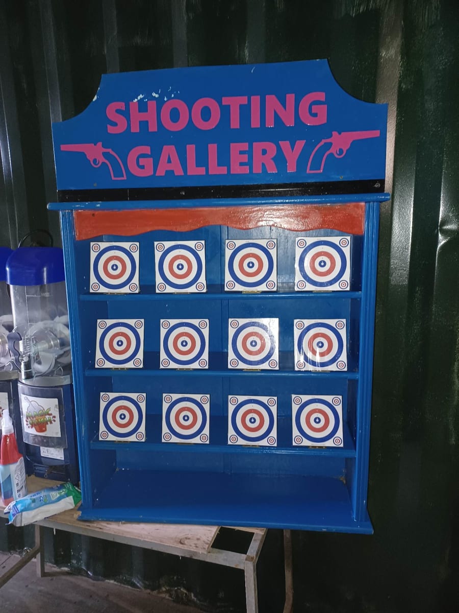 This carnival game comes with the classic board having 12 targets, 3 guns and a box of ammo.