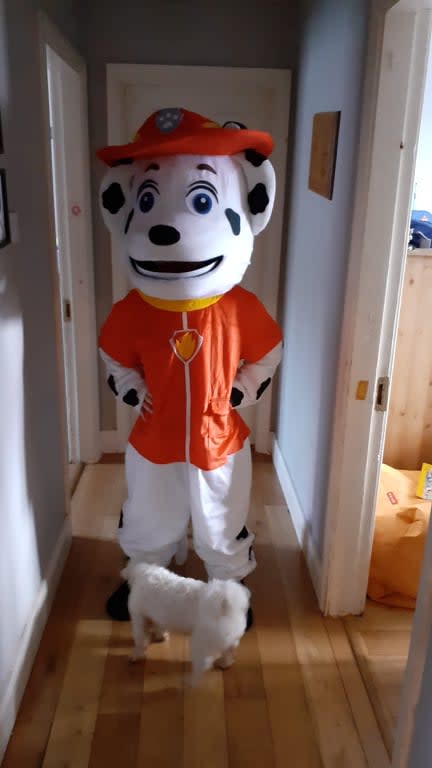 This supercool Paw Patrol Marshall Mascot hits all the right buttons! Imagine one of these fun characters at your next school function, parade, or any special occasion. Paw Patrol mascot consists of a head, sculptured suit, mittens and two shoe covers and loads of fun!