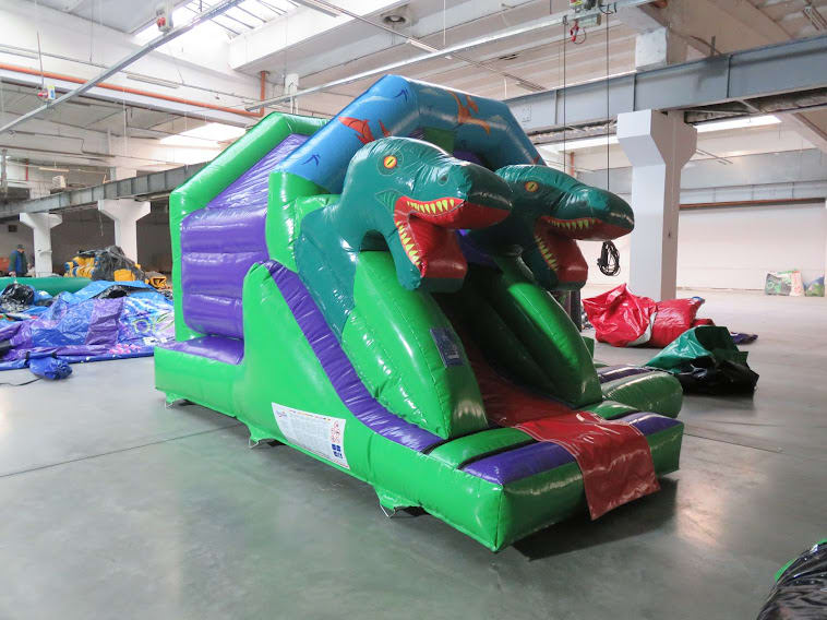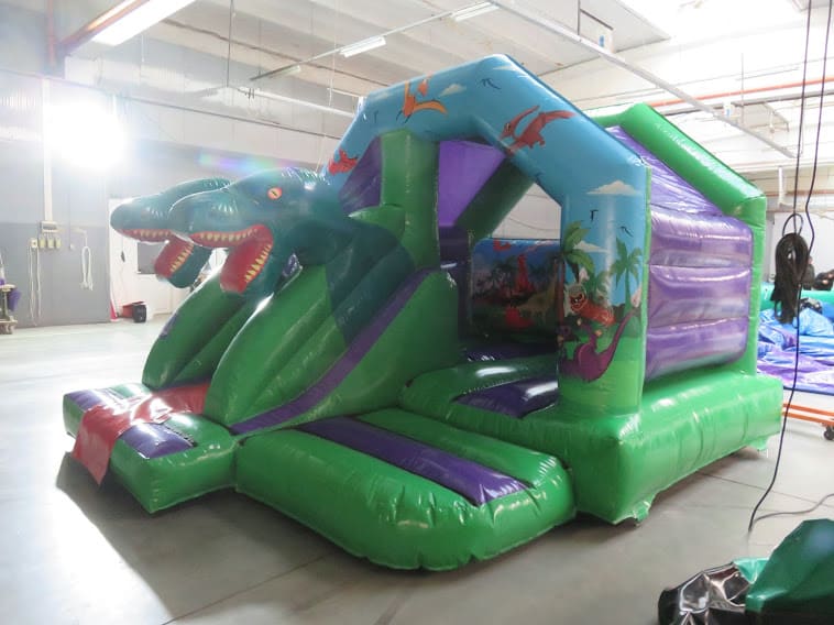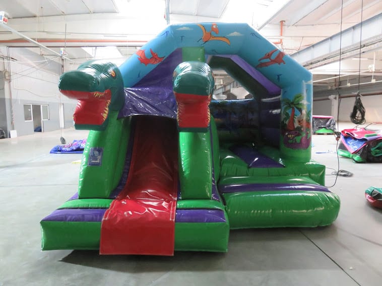 15ft x 12ft 3D Double head Dino Front Slide Combi bouncing castle is specially created for boys. Its unique artwork and the 3D dino figure brings life to any party. This unit has a a great bouncing area and a super front slide.