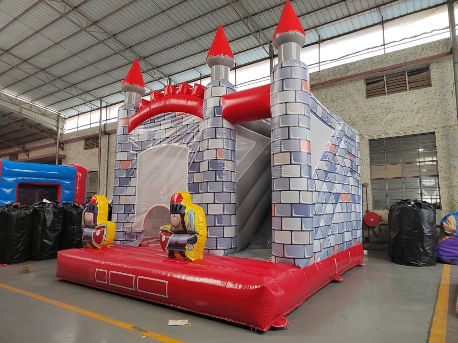 Introducing our brand new for 2022 Knight themed bouncy castle. It has a fun slide to the front and has 2 large netted windows to the side to allow for ventilation and easy viewing for parents. Great for a boys/girls medieval party.