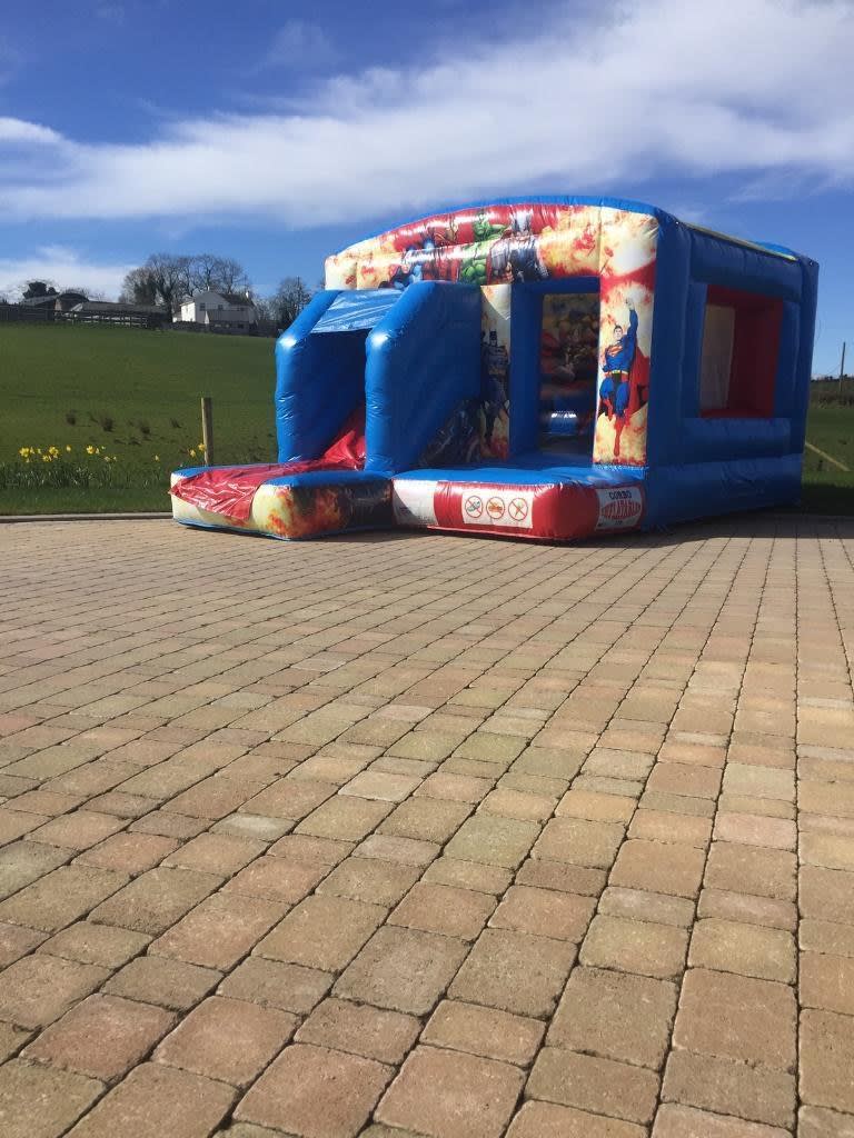 This is our eye catching and stunning new superhero combo slide bouncy castle!
