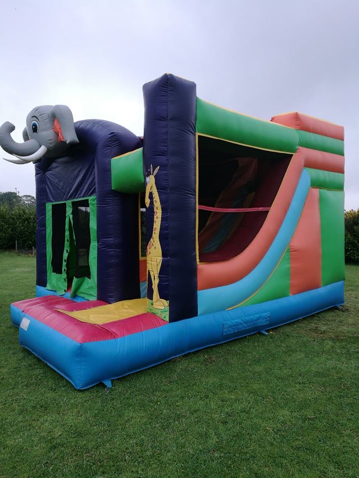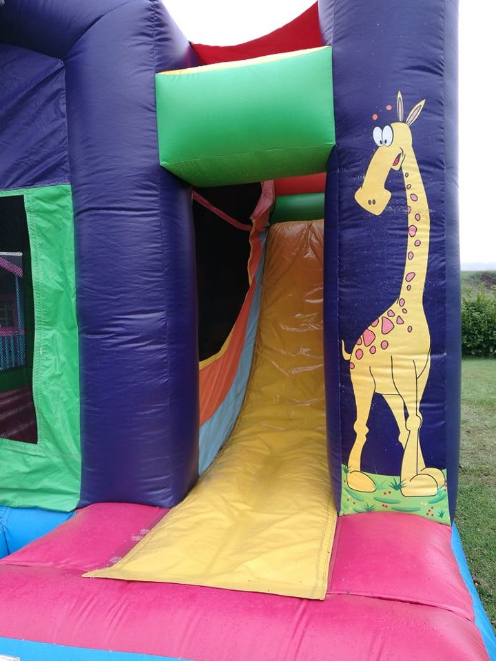 Description:20ft(W) x 20ft(L) Bouncy Castle with slide. Visually stunning castle design. The unit consists of a generous bouncing area with a climbing lane which leads to a 8ft internal slide, which exits the castle. Easy unit to supervise with safe visibility netting all around and ideal for gardens when a slide is required but the width may be an issue. This castle is designed to keep the slide and castle covered in the event of bad weather. HIGHLY RECOMMENDED.