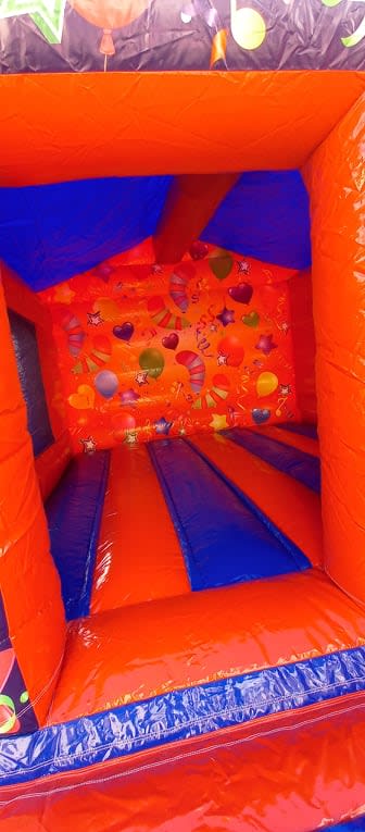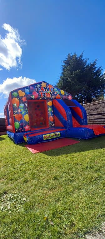 Bouncy castle and slide combi with sewn in rain cover (for the typical Irish weather), deep bounce bed, superb digitally printed artwork in a fantastic Party Time theme, fully webbed bed and step with an extra slide sheet for more enjoyment. Your children will be sure to have a great party with this new addition to our range.