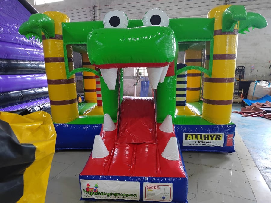 It has a Crocodile theme that makes it extra special. The inflatable has also a slide to the front. Perfect for a children's party or other events.
