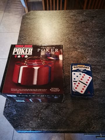 Professional Poker set including 200 heavyweight casino quality poker chips in four colours & two decks of deluxe playing cards.~ Perfect for texas hold em, Blackjack & other card games.