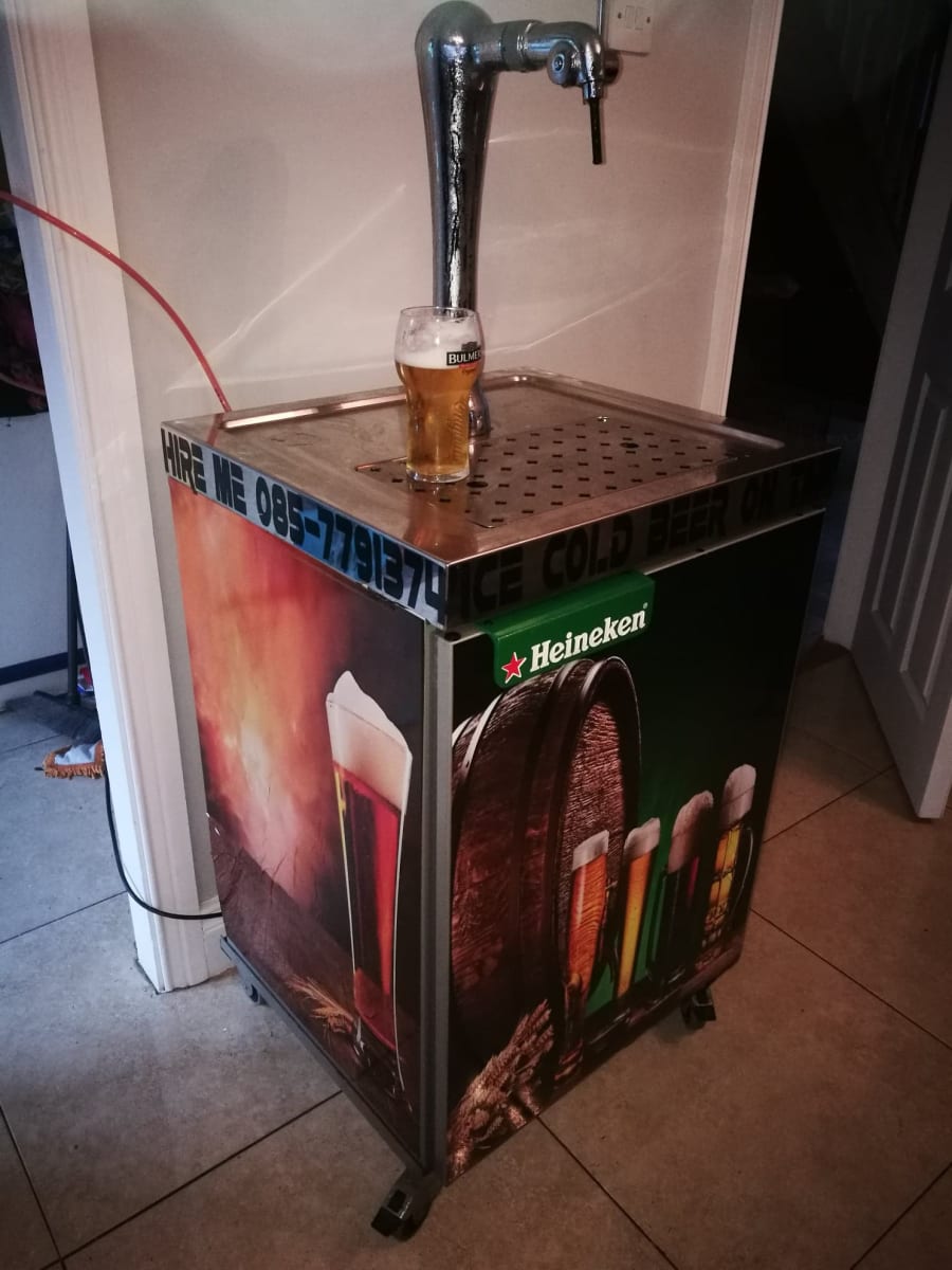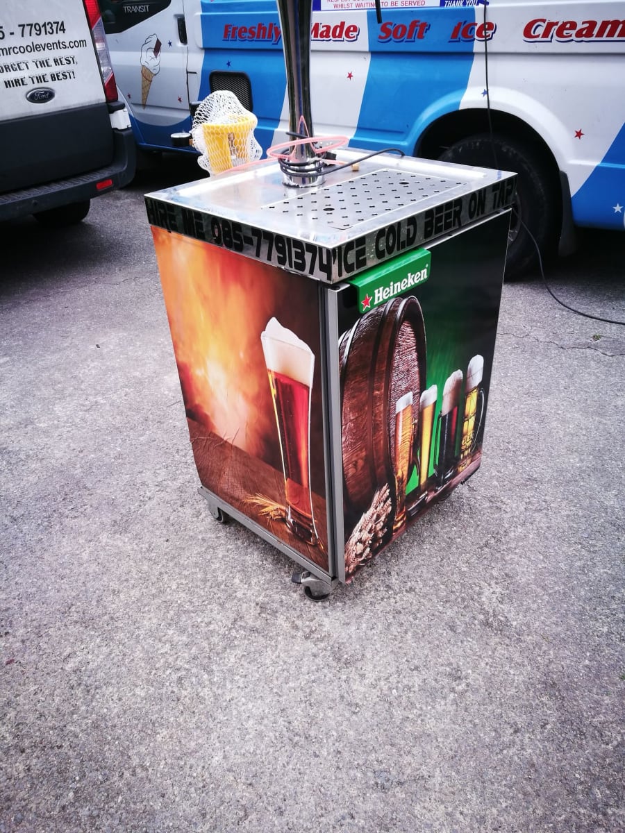Welcome to Mr Cool Events very own 'Heineken David Unit portable beer dispenser'. This is an enjoyable and efficient way to serve your 20 litre kegs. The unit is on wheels, making it easy to transport around any building and therefore easy to put out of the way.