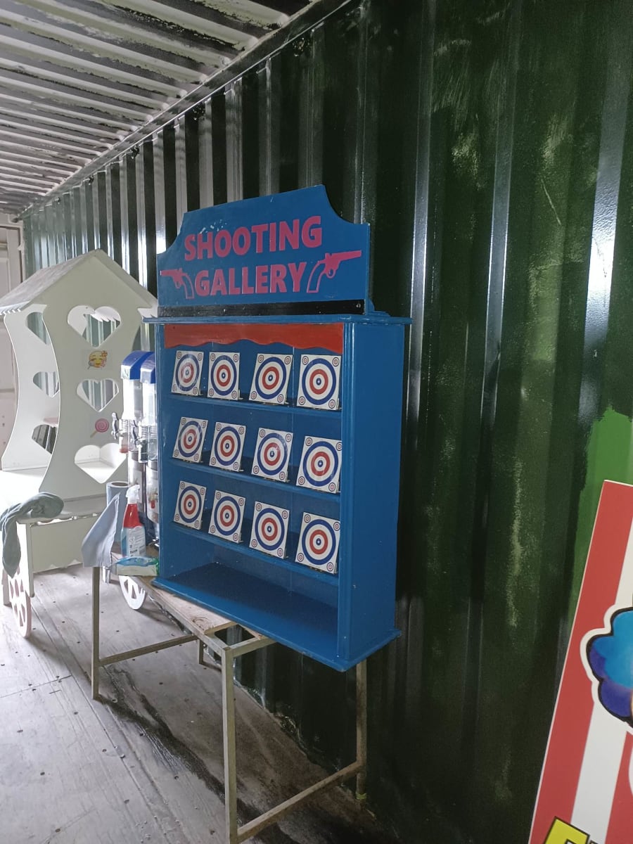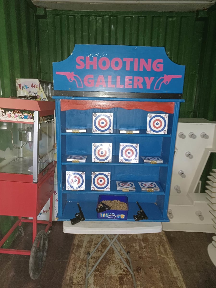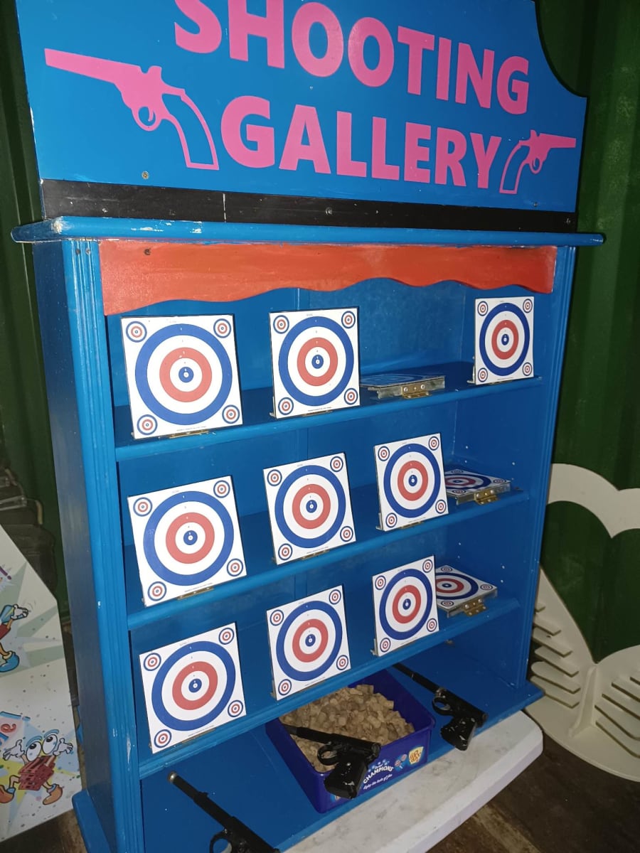 This carnival game comes with the classic board having 12 targets, 3 guns and a box of ammo.