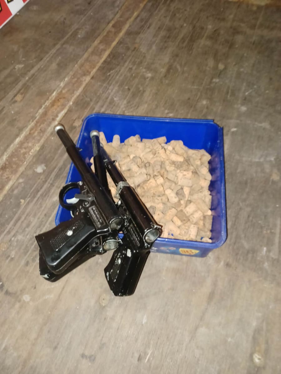 Guns are spring loaded , so just put the cork in the top and coil the spring back then fire.