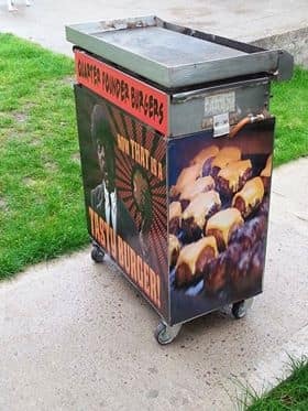 One massive and highly impressive combi bouncing castle complete with 5ft slide and basketball hoop to entertain the kids, one mobile gas BBQ hot plate unit nicely decorated and a box of high quality 4oz burgers to start the show on the road!!